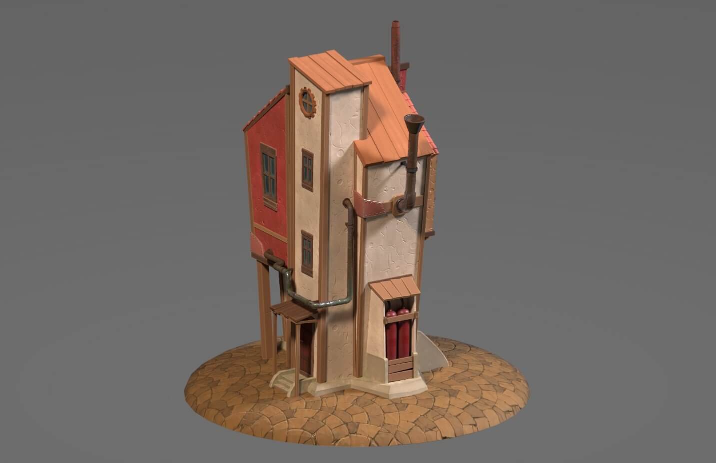 Stylized Cartoon Steampunk House 3d Model By Art Teeves